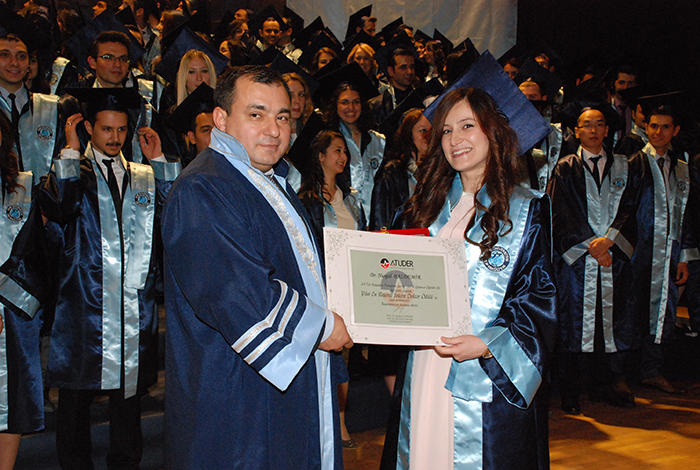 Tıp Fakültesinin mezuniyet töreninde, başarı belgemizi ve plaketimizi Acil Tıp A.D Başkanı Doç. Dr. Ahmet DEMİRCAN verdi.