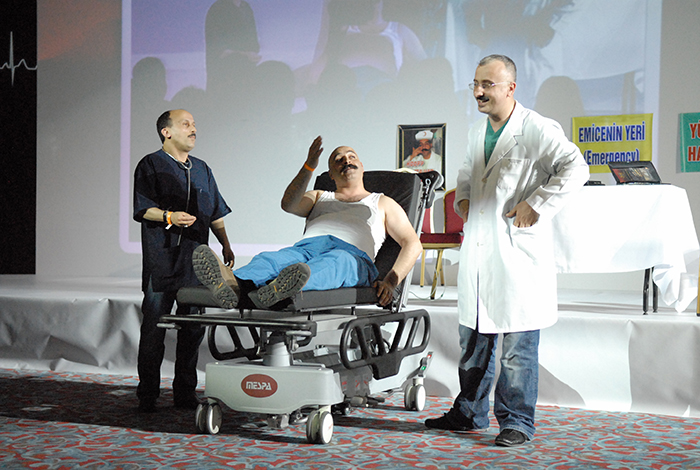 Dr. İsmet Eraydın, Dr. Serkan Besli ve Röntgen Teknisyeni Koral Koç, özellikle acil servislerde yaşanan olayları, komedi tarzında nasıl insanlara sunabileceklerini düşünüp, tiyatro grubu kurmaya karar verdi. Üç sağlık çalışanı bu düşüncelerini acil servisteki nöbet sırasında kararlaştırdılar. 2 yıl önce kurulan ve ilk oyunlarını da çalıştıkları üniversitede gösterime sunan sağlıkçılar, gelen yoğun istek üzerine bu işi geliştirmeye karar verdi. İlk oyunlarında hastane, sağlık ocağı ve acil servisleri konu eden sağlıkçı tiyatrocuların hedefi, tiyatroyu hastaneye, hastaneyi de tiyatroya taşımak. Güldürürken düşündüren grup, hastanelerde, acillerde ve 112 de yaşanan komik olayları doğaçlama olarak komedi tarzında izleyenlere sunuyor.
