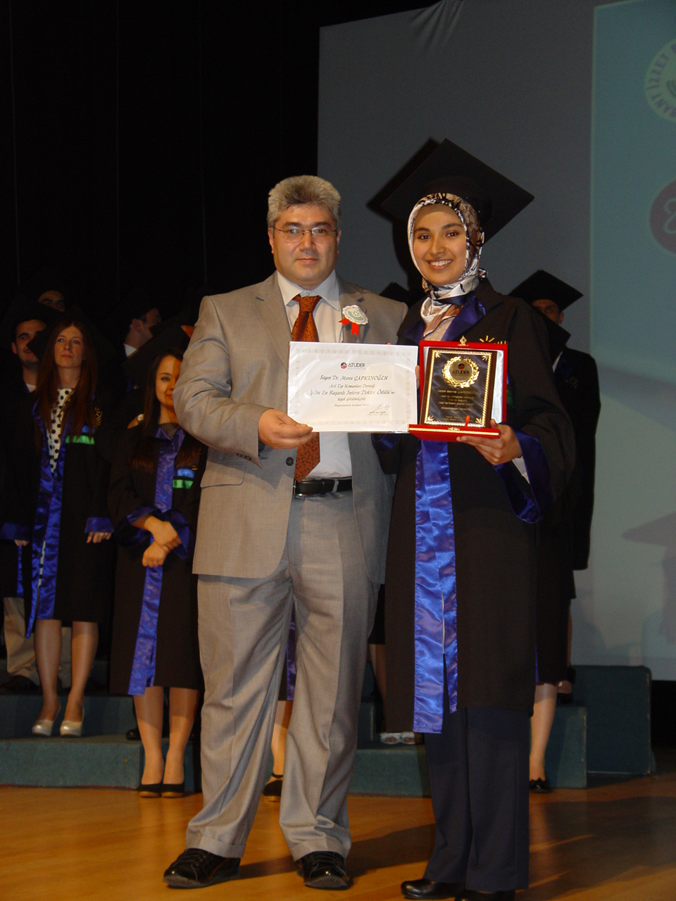 Abant İzzet Baysal Üniversitesi Tıp Fakültesi'nde 2011 yılının Acil Tıp Stajında en başarılı interni seçilen Dr. Merve ÇAPKINOĞLU'na plaketimizi ve başarı belgemizi, 27.06.2011 tarihinde yapılan törenle derneğimiz asil üyelerinden ve Abant İzzet Baysal Üniversitesi Başhekim Yardımcısı Dr. Arif DURAN verdi.