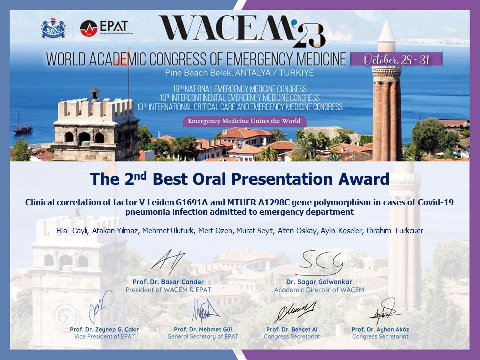 Acil Tıp Uzmanları Derneği (ATUDER) 'in 28 - 31 Ekim 2023 tarihleri arasında Pine Beach Otel Belek ANTALYA'da düzenlediği World Academic Emergency Medicine Congress, 19. Ulusal Acil Tıp Kongresi, 10rd Intercontinental Emergency Medicine Congress, 10rd International Critical Care and Emergency Medicine Congress kapsamında,
