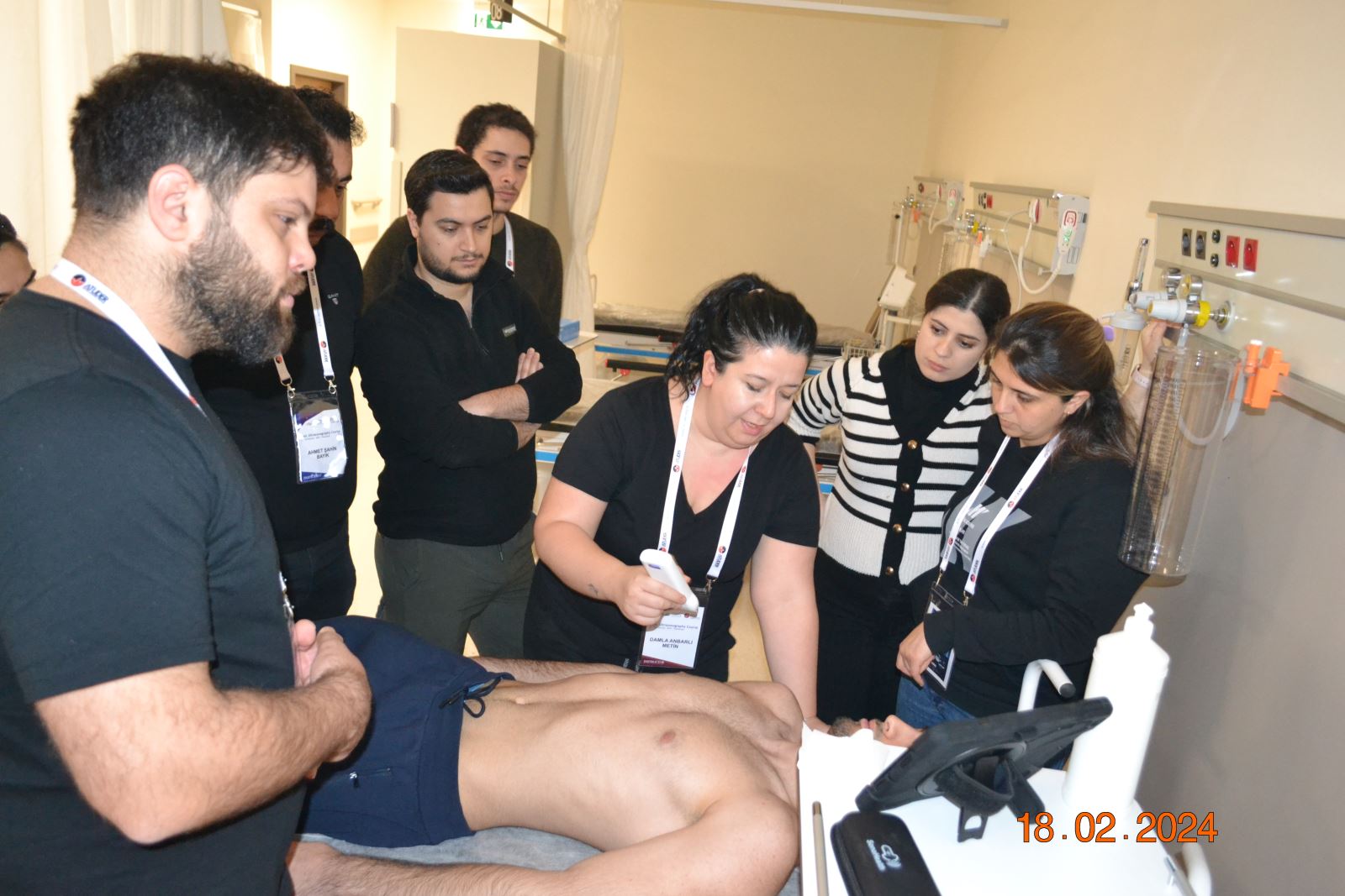 Kursun İkinci gününde ise birinci gün anlatılan derslerin birebir pratik uygulamaları yapıldı. Toplam 4 gruba ayrılan kursiyerler Toraks, Periferik, Abdomen ve Kardiyak USG eğitimleri aldılar.