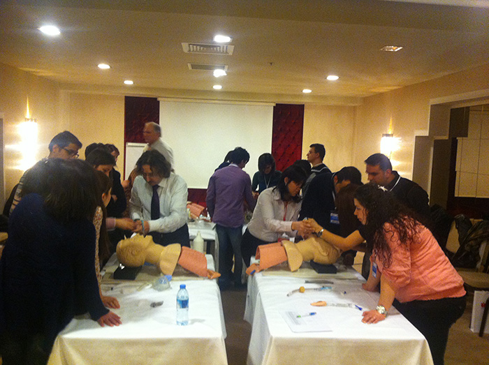 Acil Tıp Uzmanları Derneği(ATUDER) ile Türk Kardiyoloji Derneği (TKD)’nin ortaklaşa gerçekleştirdiği 33. İleri Kardiyak Yaşam Desteği Kursu ( CPR- ACLS) 2. ve son gününde yine ilk gün olduğu gibi katılımcıların yoğun ilgi ve hevesiyle devam ediyor. Özellikle pratik uygulamalardaki kursiyerlerin başarısı bizi oldukça memnun etti.