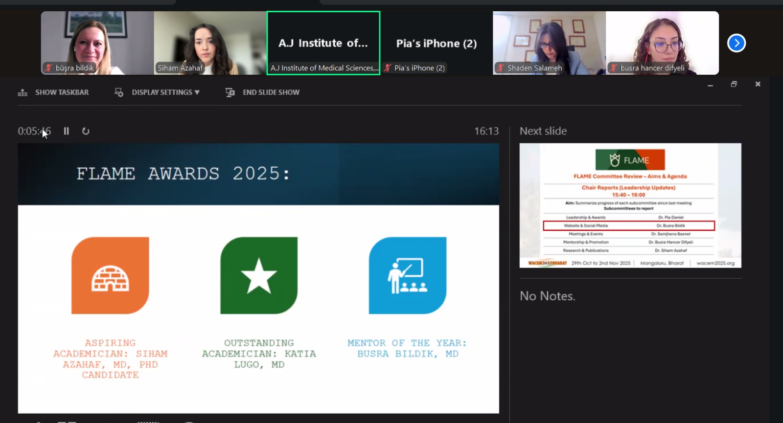 29 Ekim - 02 Kasım 2025 tarihleri arasında Hindistan’ın BHARAT Karnataka eyaleti başkenti olan MANGALURU’da yapılan XIth World Academic Congress of Emergency Medicine WACEM25 ve aynı anda yapılan EMINDIA25 kapsamında, 1 Kasım 2025 tarihinde hem şahsen hem de çevrimiçi olarak yapılan ve dünyanın birçok yerinden katılımcılarının olduğu yıllık toplantısı Female Leadership Academy for Medical Excellence (FLAME) , A.J. Tıp Bilimleri Enstitüsü'nde gerçekleştirdi.