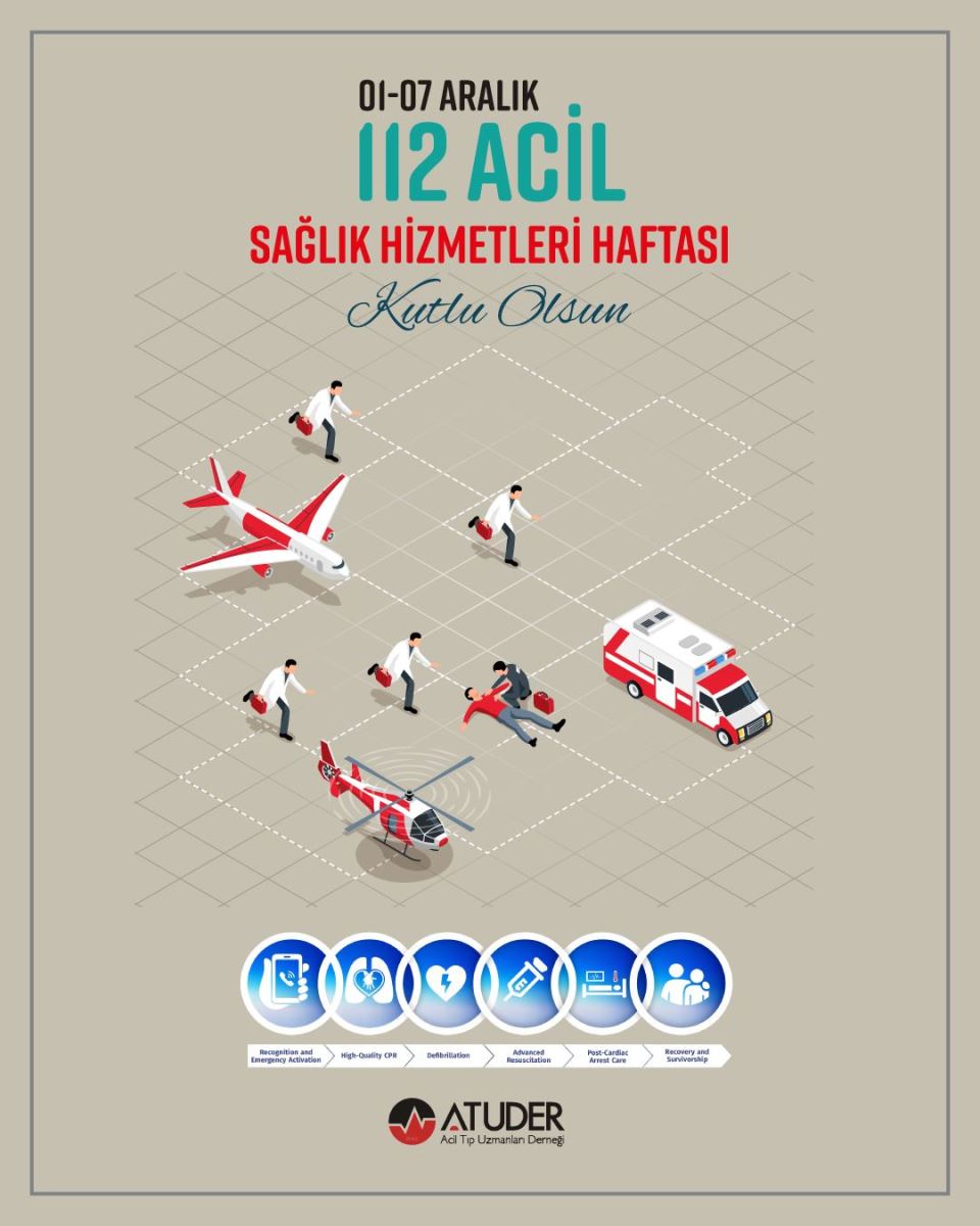 Ülkemizin her yerinde , 7 gün 24 saat kesintisiz hizmet veren, fedakarca ve özveri ile çalışan kocaman sağlık zincirinin güçlü bir halkası ve sağlık hizmetinin öncü kuvvetleri olan 112 Acil Sağlık Hizmetleri çalışanı meslektaşlarımızın haftasını kutlarız.