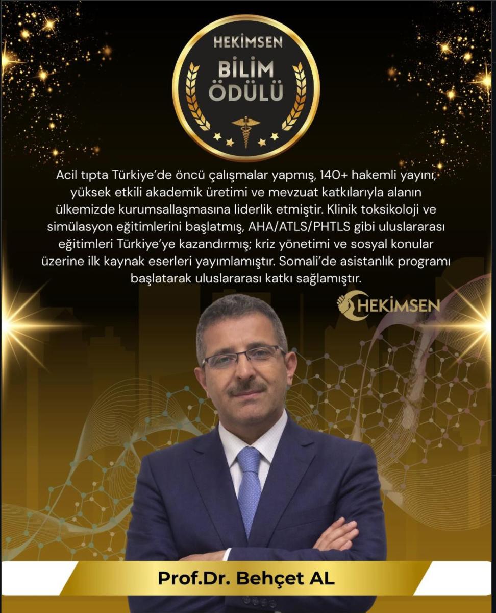 Prof. Dr. Behçet AL'a da Acil Tıp alanında yaptığı çalışmalardan dolayı ödüle layık görüldü.