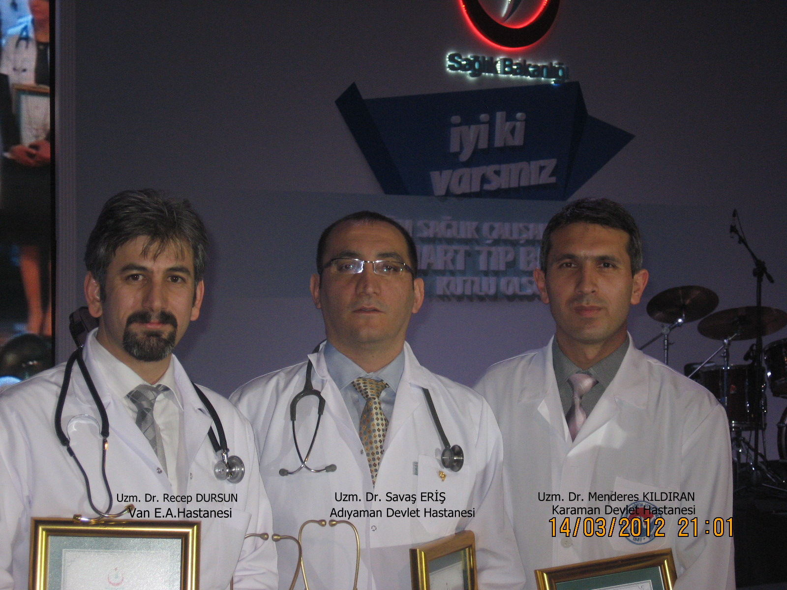 14 Mart 2012 Saat 17.00'da, Ankara ATO Kongre Merkezinde yapılan ve T.C Sağlık Bakanı Sayın Prof. Dr. Recep AKDAĞ'la birlikte milletvekilleri, bakanlık bürokratları, genel müdürler, İl sağlık müdürleri, 81 ilden gelen yılın doktoru ödülüne layık görülenlen doktorlar ile çok sayıda izleyicinin hazır bulunduğu törerene İstiklal Marşı ve şehitlerimiz için saygı duruşu ile başlandı.