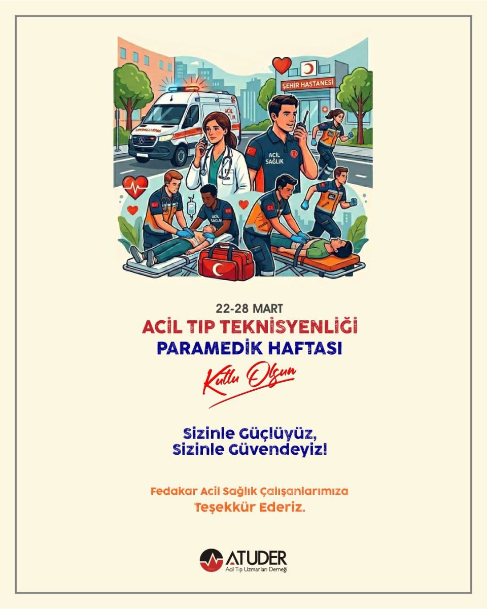 Acil Tıp Uzmanları Derneği (ATUDER) olarak bizler; acil servislerin dinamik yapısında, hastane öncesi müdahaleden itibaren omuz omuza çalıştığımız her bir Paramedik ve Acil Tıp Teknisyeni (ATT) arkadaşımızın emeğini ve fedakarlığını yürekten takdir ediyoruz.