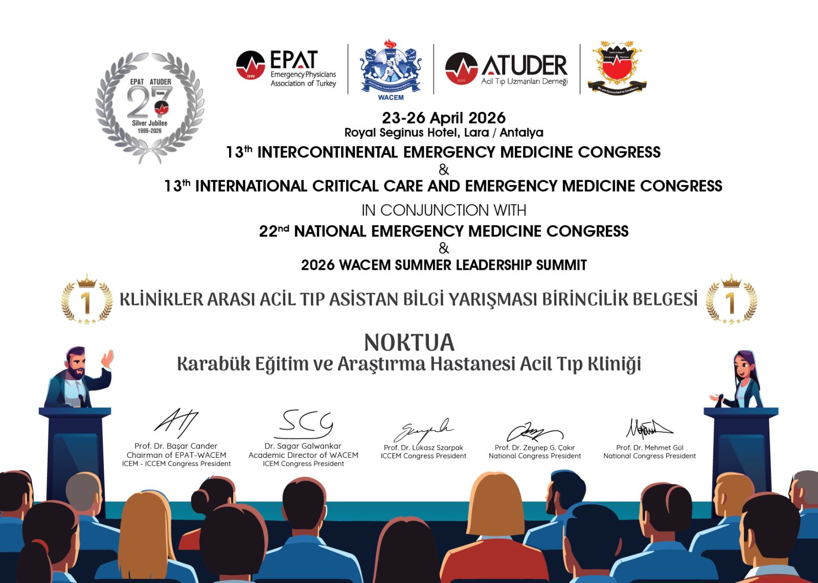 Kıyasıya geçen mücadelelerin ardından, gösterdiği üstün performansla Karabük Eğitim ve Araştırma Hastanesi Acil Tıp Kliniği (NOKTUA) birincilik kupasının sahibi oldu.