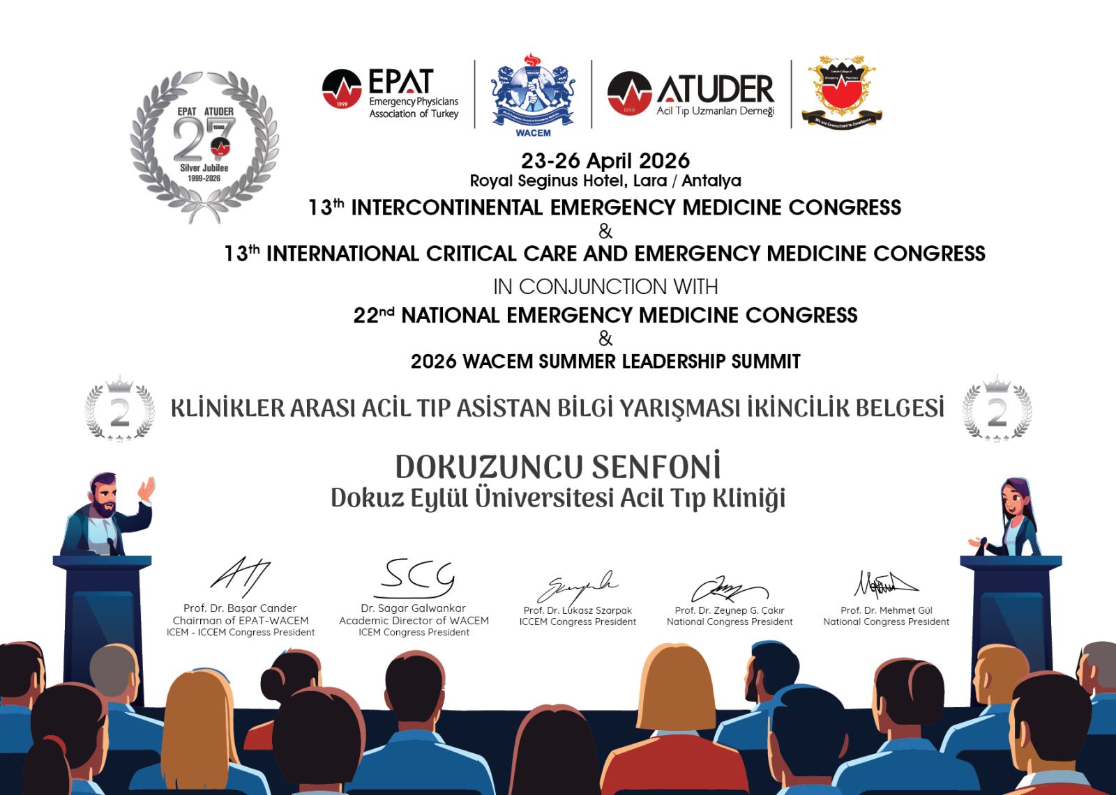 İkinciliği Dokuz Eylül Üniversitesi Acil Tıp Kliniği (Dokuzuncu Senfoni) elde ederken, üçüncülük kürsüsüne ise Bezmialem Vakıf Üniversitesi Hastanesi Acil Tıp Kliniği (Bezmiteam) yerleşti.