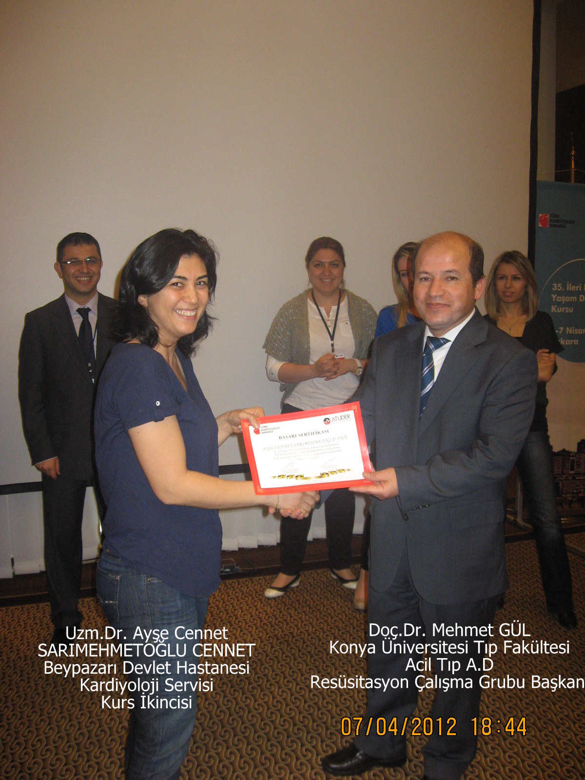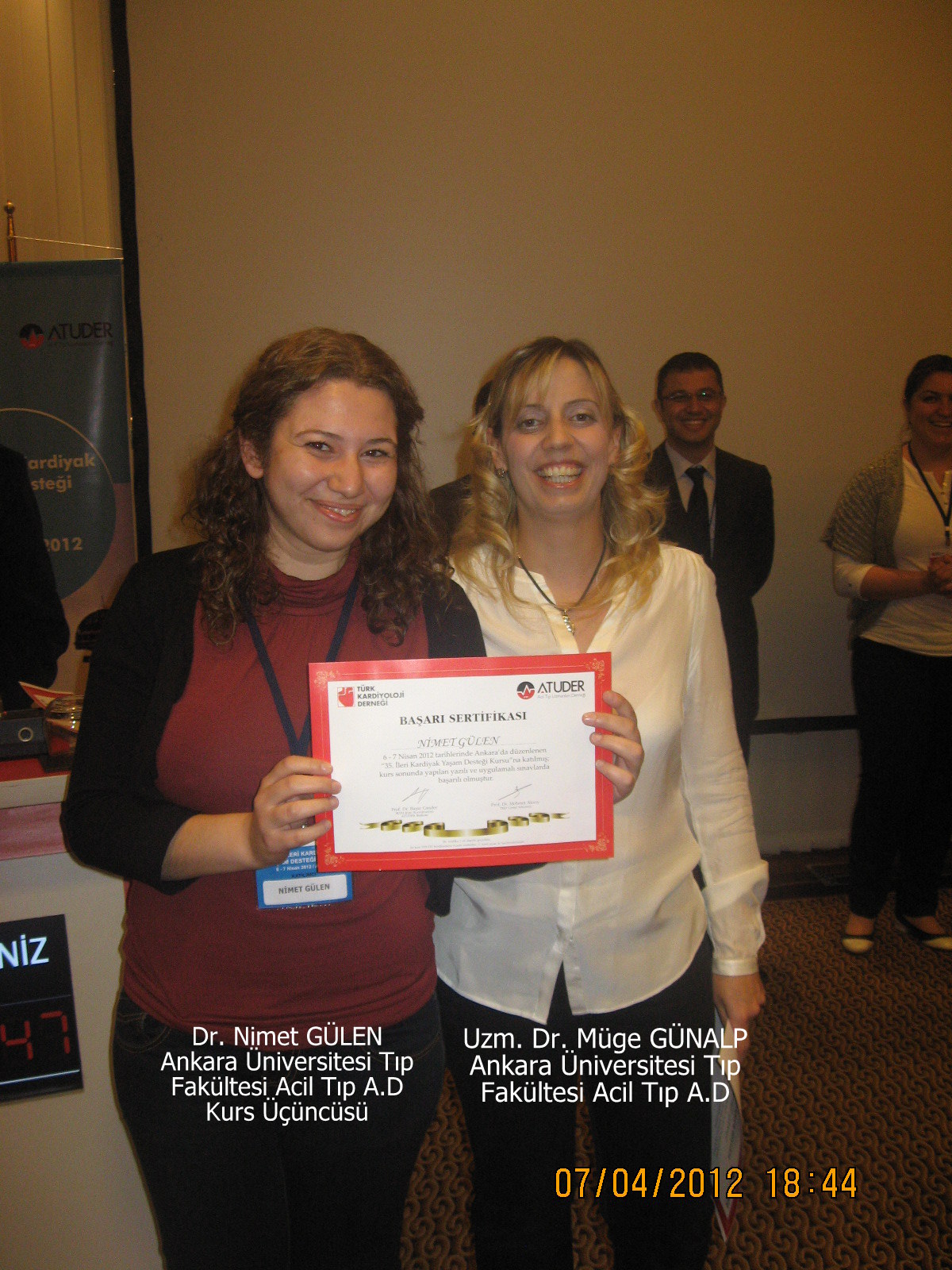 Acil Tıp Uzmanları Derneği(ATUDER) ile Türk Kardiyoloji Derneği (TKD)’nin ortaklaşa gerçekleştirdiği 35. İleri Kardiyak Yaşam Desteği Kursu ( CPR- ACLS) 06 - 07 Mart 2012 ANKARA son gününde yine ilk gün olduğu gibi katılımcıların yoğun ilgisi ile devam etti. Bu kursumuzdan toplam 32 kişi T.C Sağlık Bakanlığı onaylı Başarı Sertifikası almaya hak kazandı. Başarılı olamayanlara Katılım Belgesi verildi.