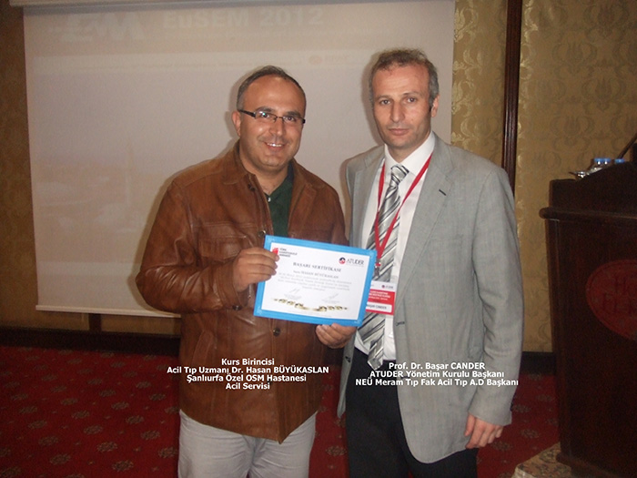 Acil Tıp Uzmanları Derneği(ATUDER) ile Türk Kardiyoloji Derneği (TKD)’nin ortaklaşa gerçekleştirdiği 36. İleri Kardiyak Yaşam Desteği Kursu ( CPR- ACLS) 18-20 Mayıs 2012 ŞANLIURFA son gününde yine ilk gün olduğu gibi katılımcıların yoğun ilgisi ile devam etti. Bu kursumuzdan toplam 70 kişi T.C Sağlık Bakanlığı onaylı ve 3 yıl geçerli Başarı Sertifikası almaya hak kazandı. Başarılı olamayanlara Katılım Belgesi verildi.