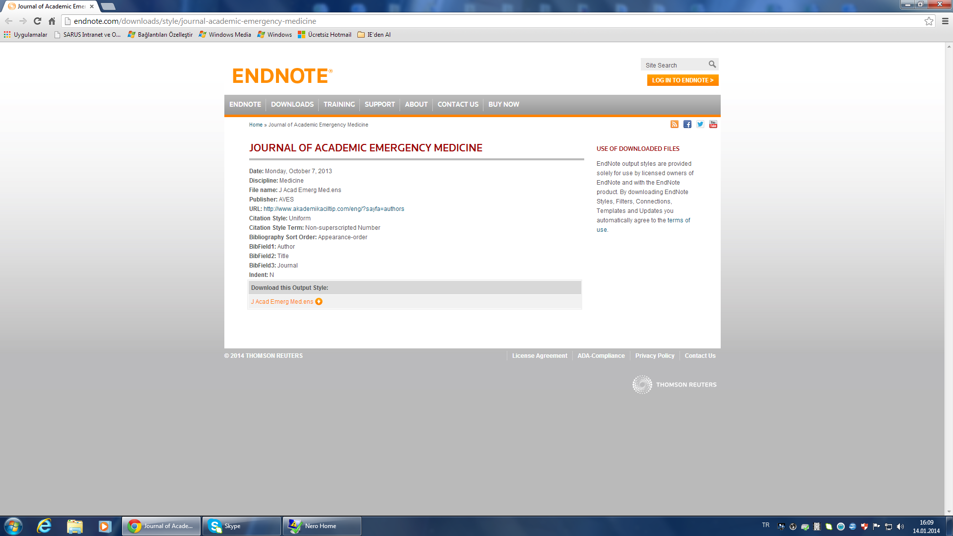 Dergimizin Thomson Reuters - EndNote sistemine entegrasyonu tamamlanmıştır. http://endnote.com/downloads/style/journal-academic-emergency-medicine