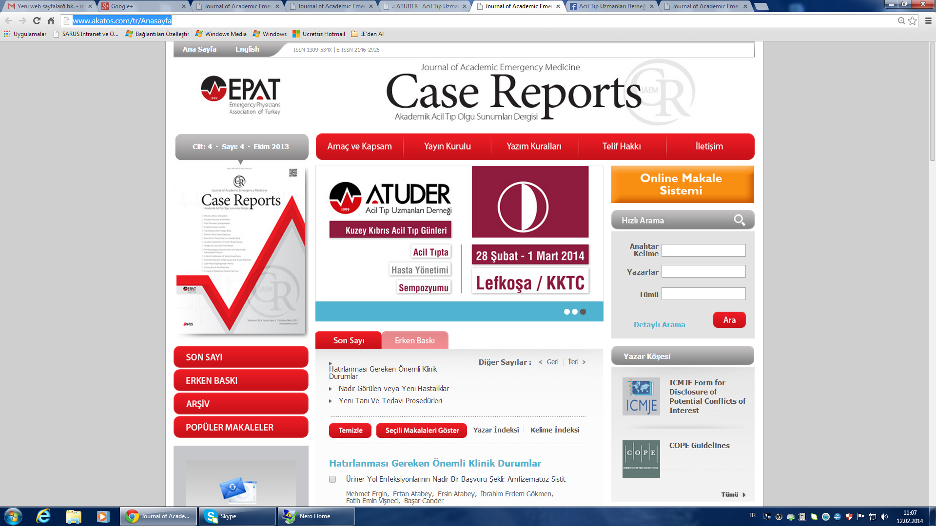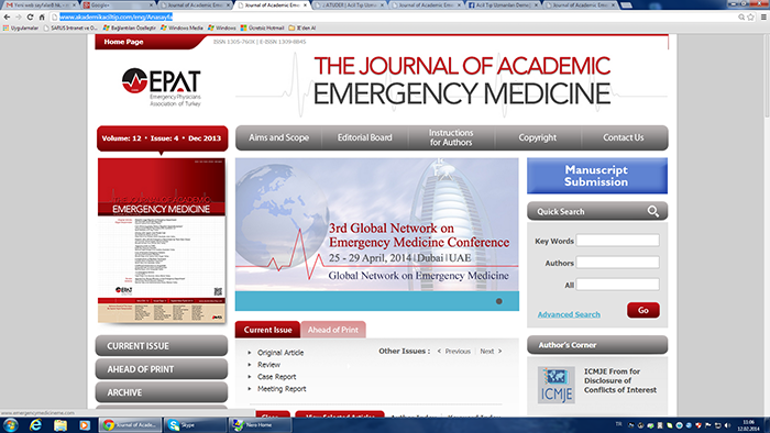 Eurasian Journal of Emergency Medicine (EAJEM) Journal of Emergency Medicine Case Reports (JEMCR) Eurasian Journal of Critical Care (Eurasian J Crit Care) Eurasian Journal of Toxicology (Eurasian J Tox)
