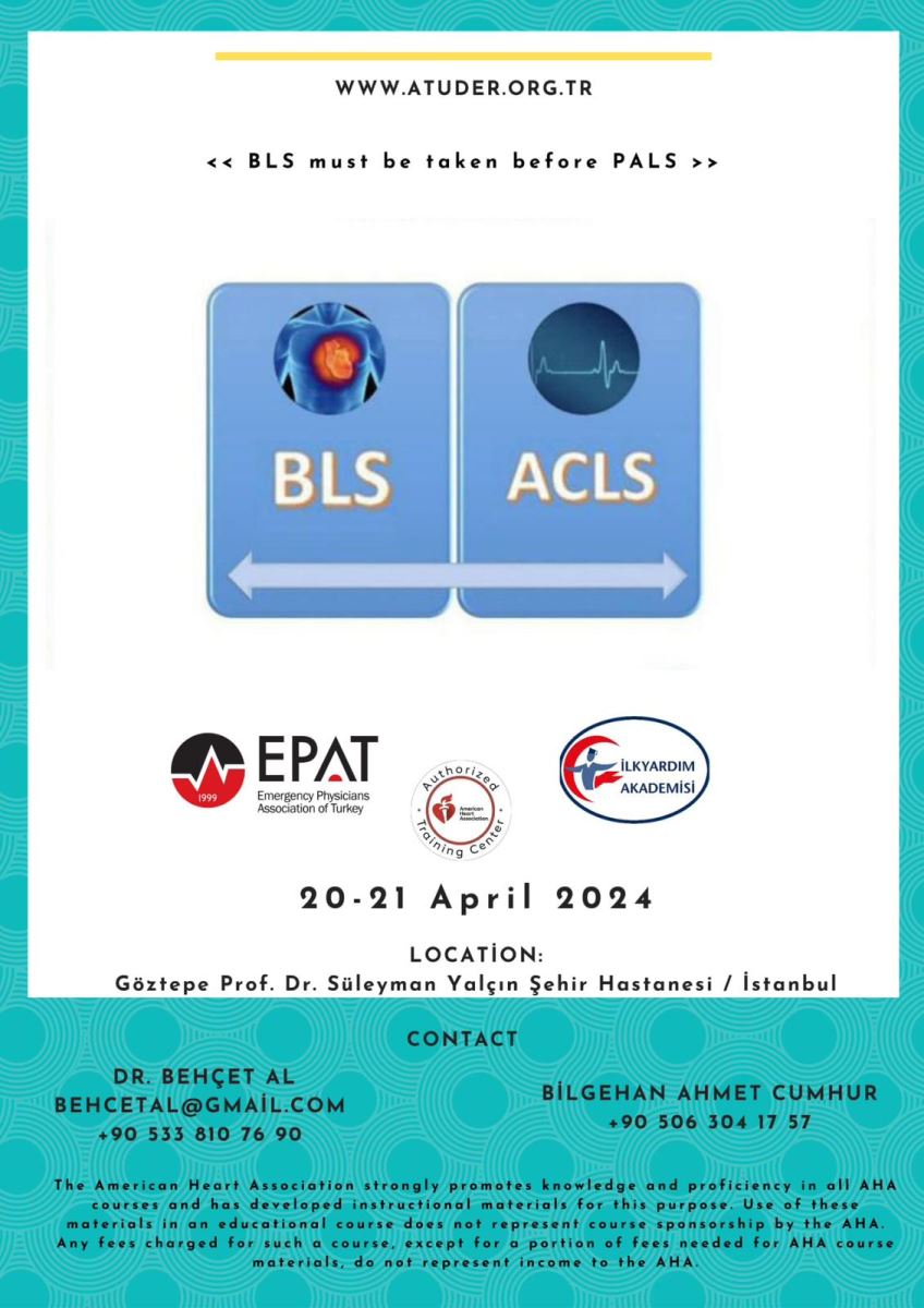 Not: Kursiyer olarak katılmak isteyen katılımcılarımız BLS+ACLS kursuna kayıt yaptırabileceği gibi sadece BLS kursuna da kayıt yaptırabilirler.