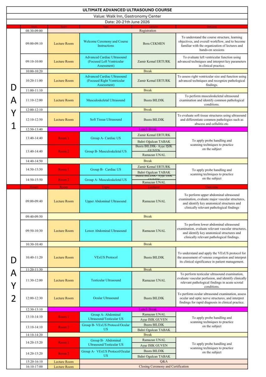 This course is designed to enhance the point-of-care ultrasound (POCUS) skills of clinicians working in emergency and critical care settings. Participants will receive both theoretical and hands-on training in areas such as advanced cardiac ultrasound (focused left and right ventricular assessment), VExUS, musculoskeletal ultrasound, soft tissue ultrasound, upper and lower abdominal ultrasound, ocular ultrasound, and testicular ultrasound.