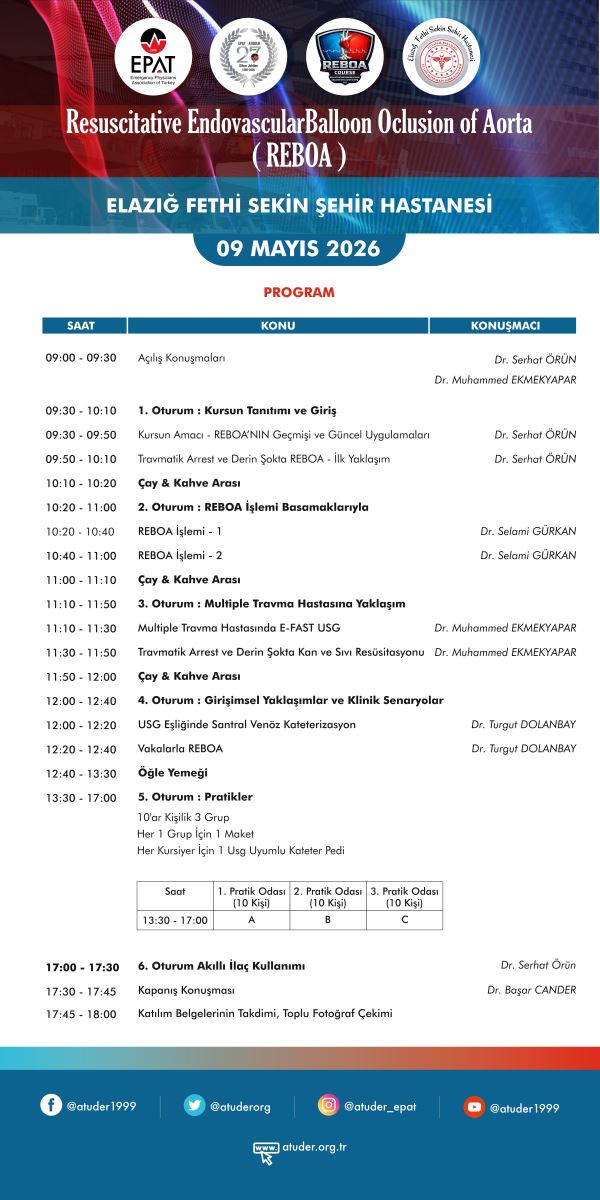 Kursumuzda her katılımcının eğitimciler eşliğinde orjinal simülasyon maketleri üzerinde ultrasonografi kılavuzluğunda REBOA işlemi gerçekleştirmesi sağlanacaktır.
